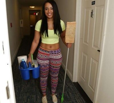 Deliciosa negra limpiando la casa