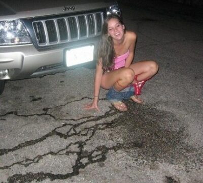 Chicas jóvenes meando drogadas después de una noche de fiesta